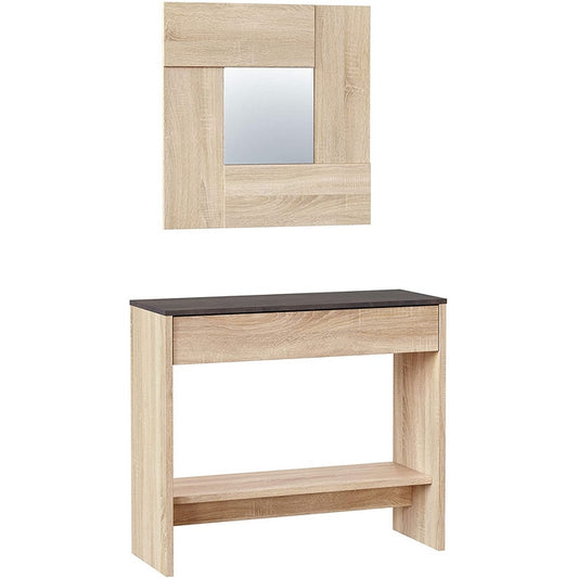 Console industrial con 3 cassetti e ripiani in metallo e legno