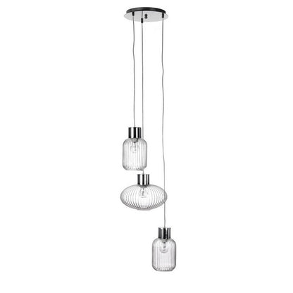 Lampadario 3 luci sfalsate con struttura cromata e vetro - Showy